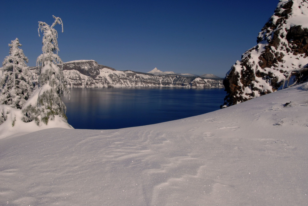Caldera ; West Rim, Crater Lake National Park, Klamath County, Oregon Latitude: 42.9355010986328, Longitude: -122.13200378418