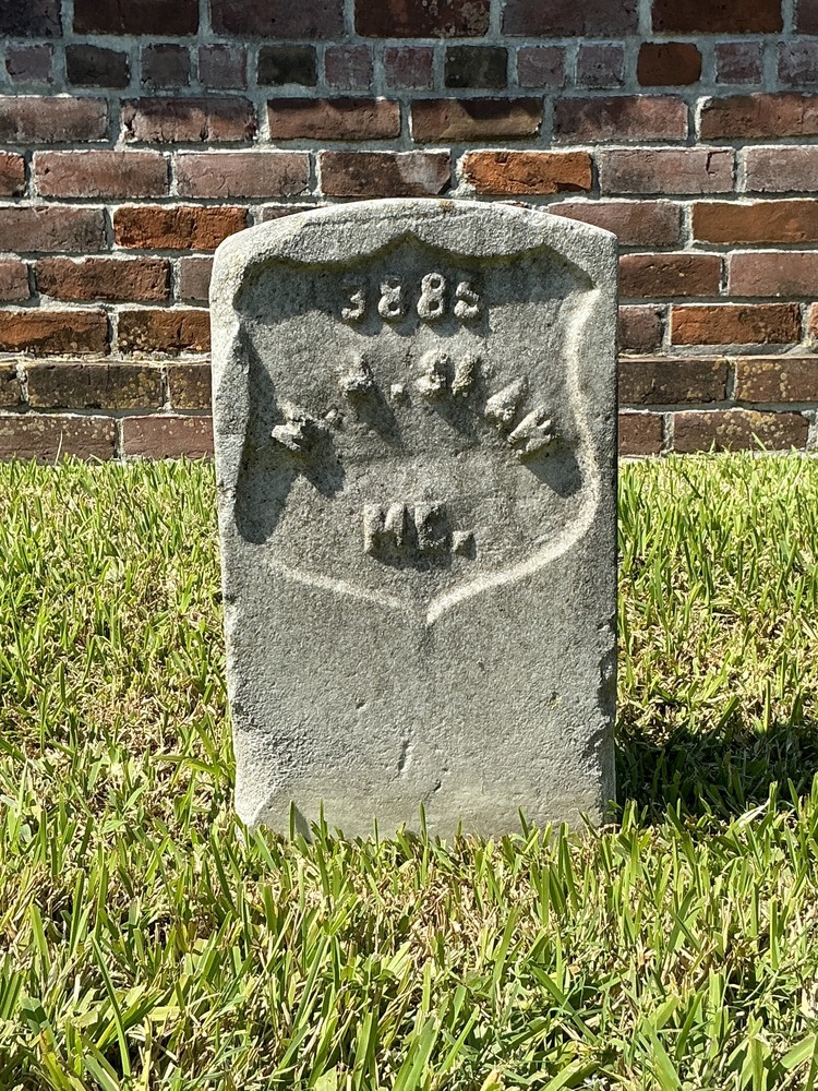 Headstone at Chalmette National Cemetery. Grave ID: 3885. Located at Section 50, Row 6, Site Number 4. Photo taken as part of the 2024 condition assessment and inventory.