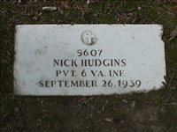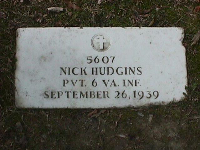 Headstone for Nick Hudgins in Poplar Grove National Cemetery