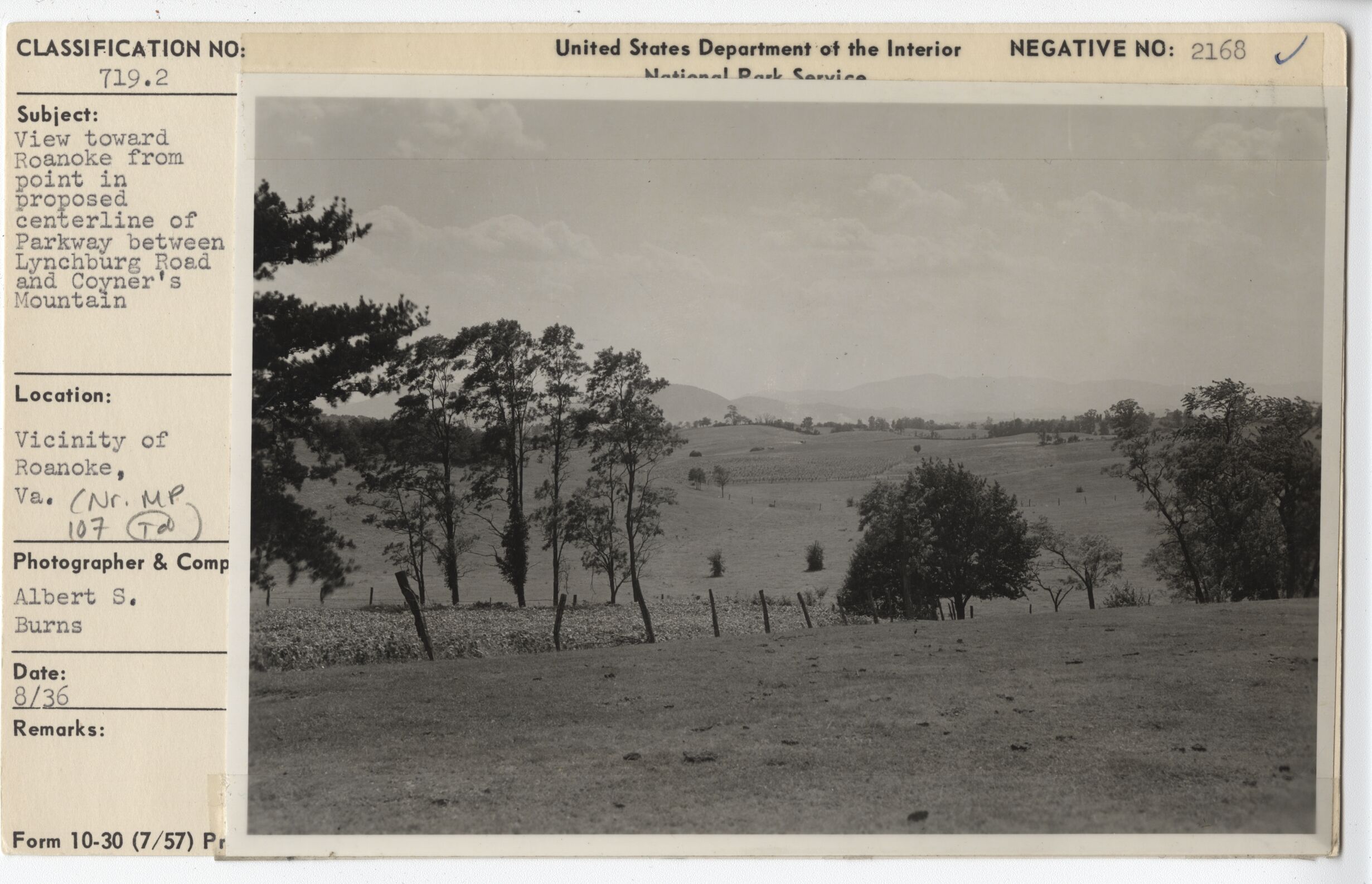 View toward Roanoke from point in proposed centerline of Parkway between Lynchburg and Coyner Mountain