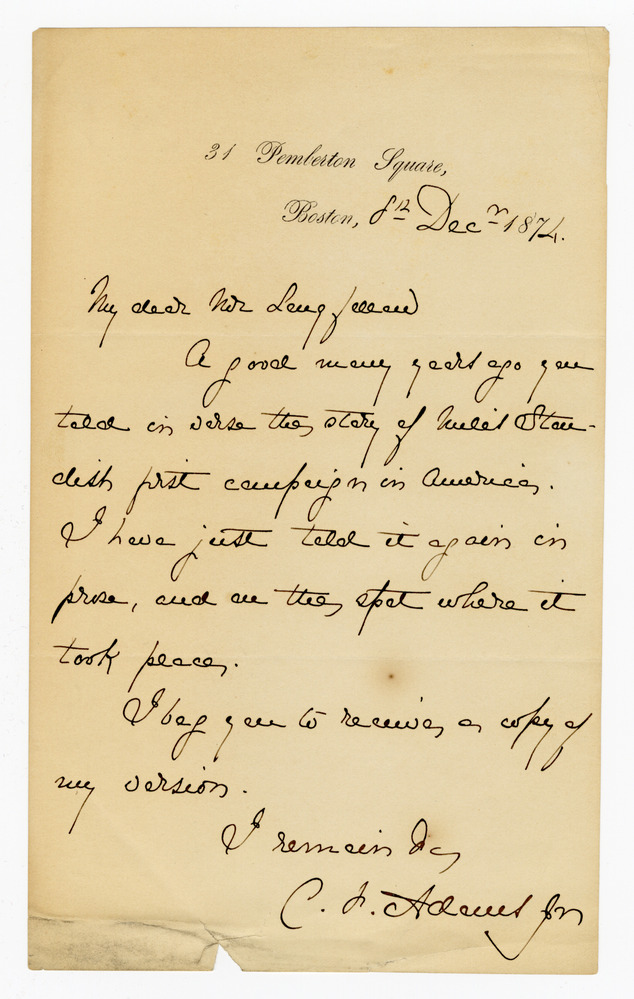 Charles Francis Adams Jr. to Henry Wadsworth Longfellow, 8 December 1874