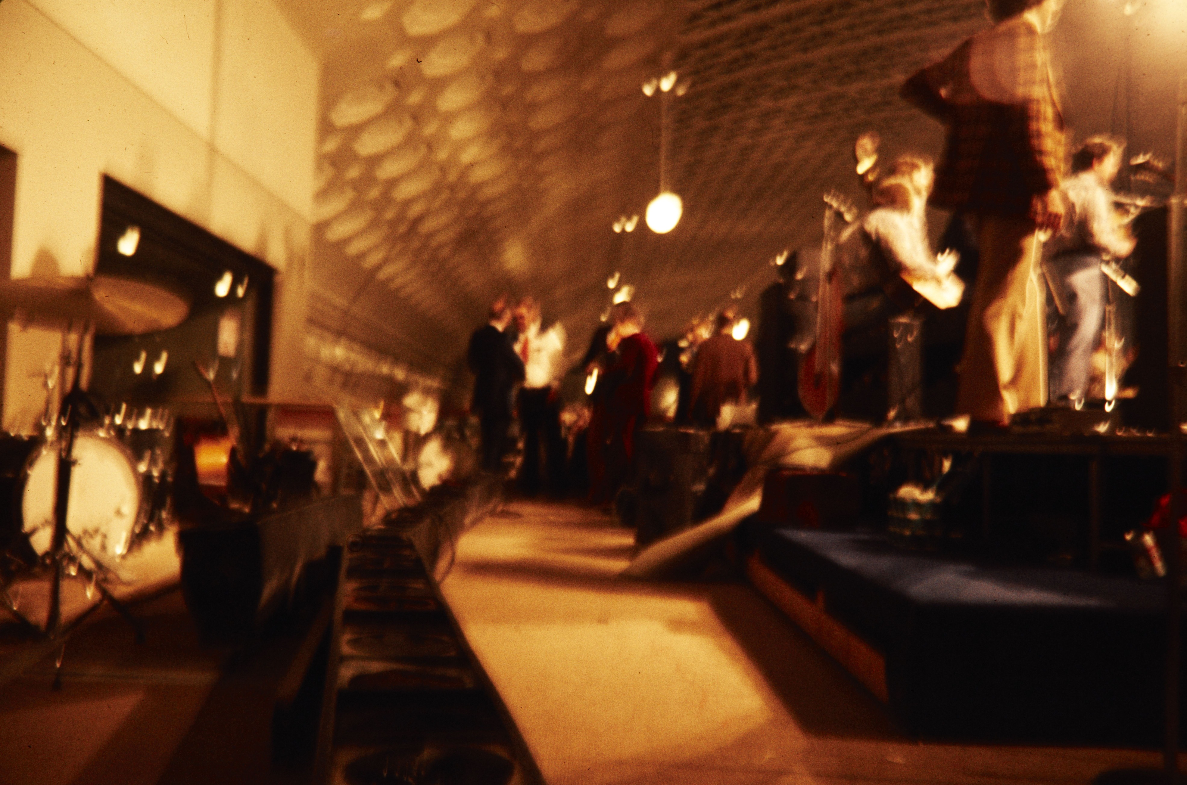 View behind stage of musicians performing in Union Station in Washington, D.C.