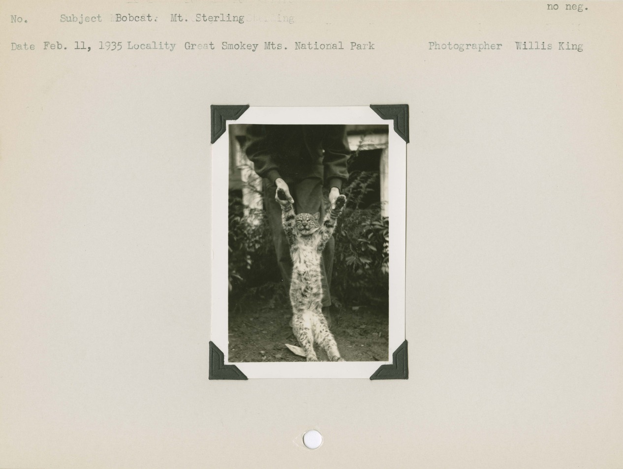 Bobcat. Mount Sterling. Locality: Great Smokey Mountains National Park. No Negative on File.