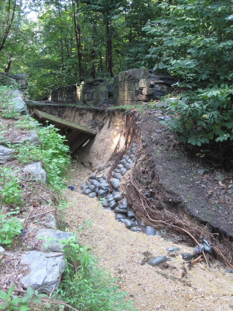 Image of Lock 2 of the patowmack Canal showing erosion that resulted from heavy rains of tropical Storm Lee September 8, 2011