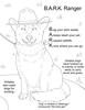 A coloring page of a dog in a ranger hat with BARK Ranger instructions and facts about Hidatsa Dogs.
