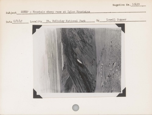 Sheep--Mountain sheep rams at Igloo Mountain. Locality: Mount McKinley Park [Denali National Park & Preserve]. Negative #: 10499