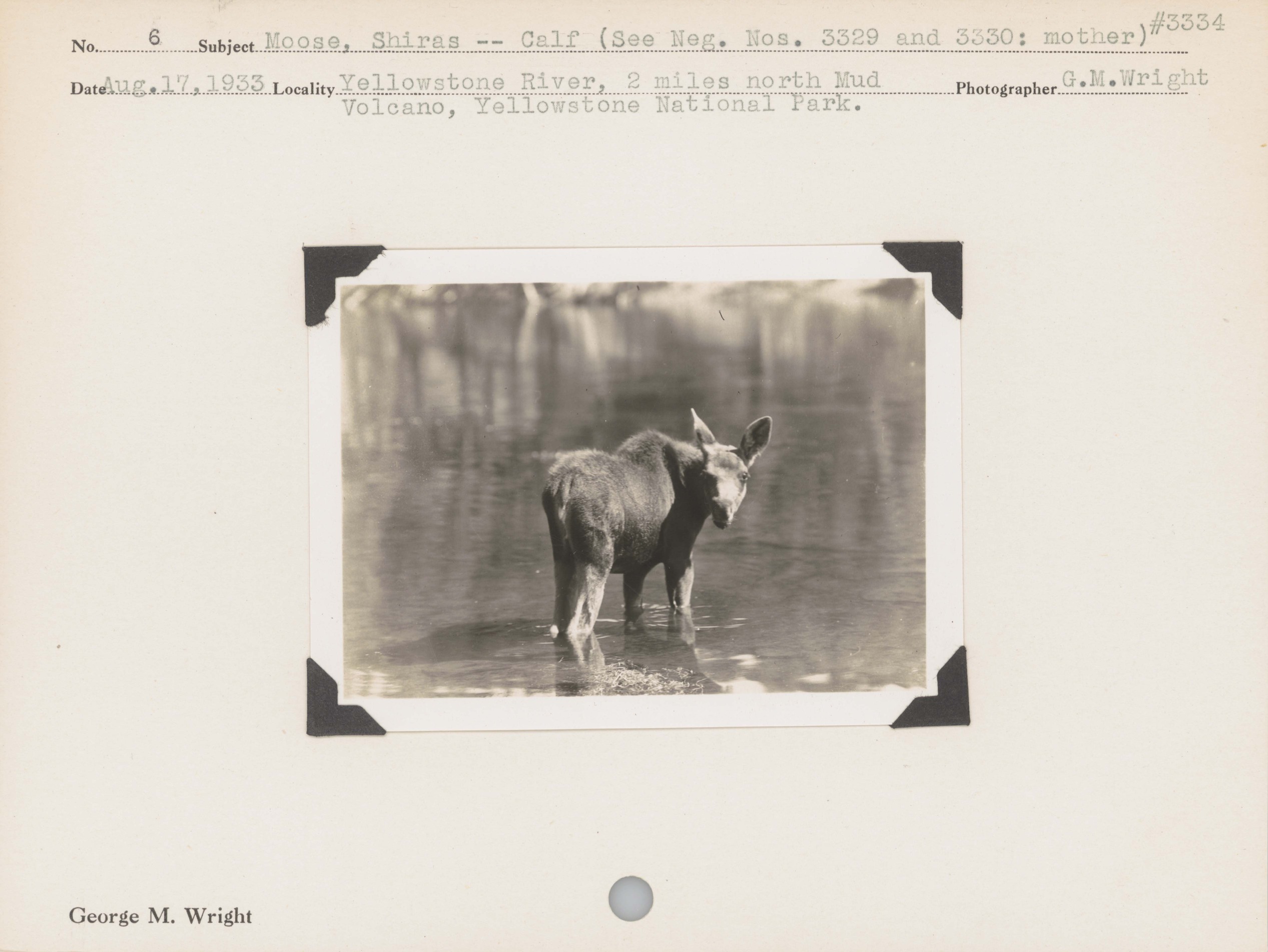 Moose, Shiras--Calf . Locality: Yellowstone River, 2 miles north Mud Volcano, Yellowstone National Park. Negative #: 3334. (See Neg. Nos. 3329 and 3330: mother)