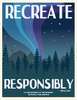Illustration of the northern lights over a mountain and forest at night. Text reads "Recreate Responsibly. NPS.gov. US Department of the Interior. National Park Service."
