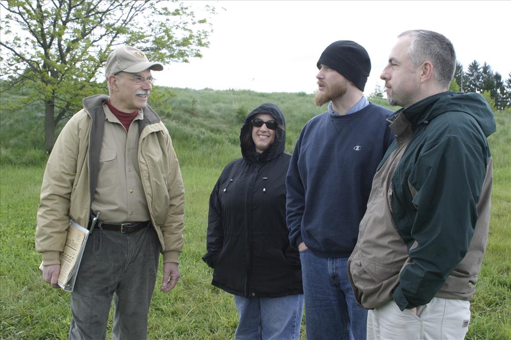 Cuyahoga Valley National Park is designated an Important Bird Area by the Audubon Society of Ohio, in part because of the restored grasslands at the site of the former Richfield Coliseum. A property once known for its sports/concert arena is now managed by the National Park Service as a grassland for rare birds. Cuyahoga Valley National Park offers year-round programs on bird watching. || Visitors talk with Lisa Petit, Chief of Resource Management; former Richfield mayor Ralph Waszak, Sr.; and another volunteer at an interpretive program called After the Coliseum in 2006. The program was an opportunity for local residents to learn how the park intends to manage this newly restored property. .