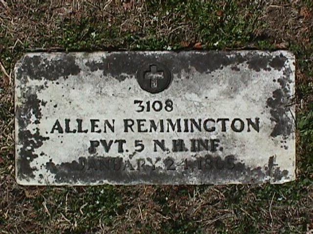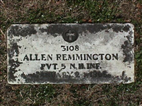 Headstone for Allen Remmington in Poplar Grove National Cemetery