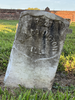 Front of historic upright marble headstone with recessed shield face.