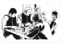 Illustration depicts a mealtime scene.