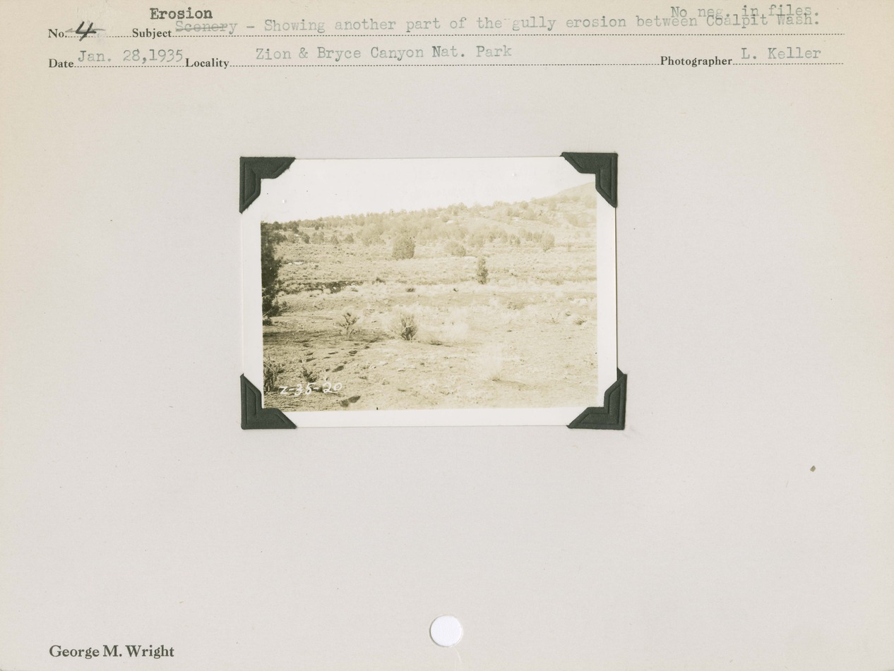 Erosion - Showing another part of the gully erosion between Coalpit Wash. Locality: Zion & Bryce Canyon National Park. No negative on file
