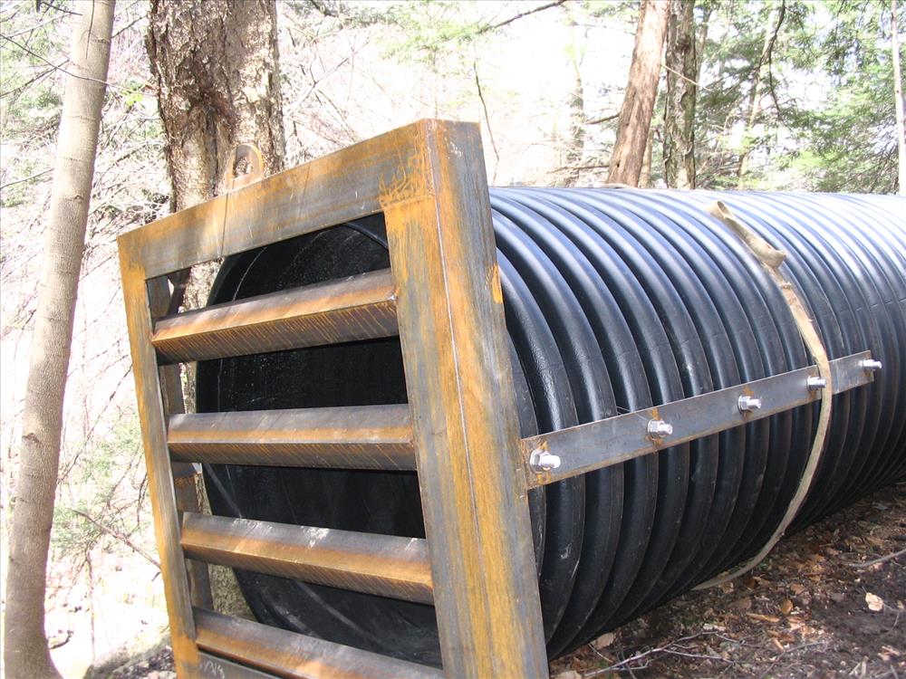 Example of culvert with bat friendly gate attached for sealing mine shaft.