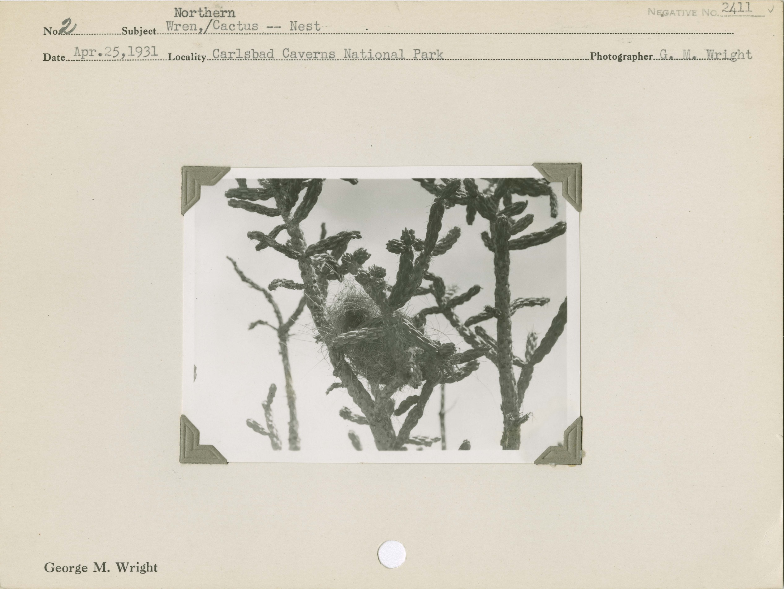 Wren, Northern Cactus -- Nest. Locality: Carlsbad Caverns National Park. Negative #: 2411