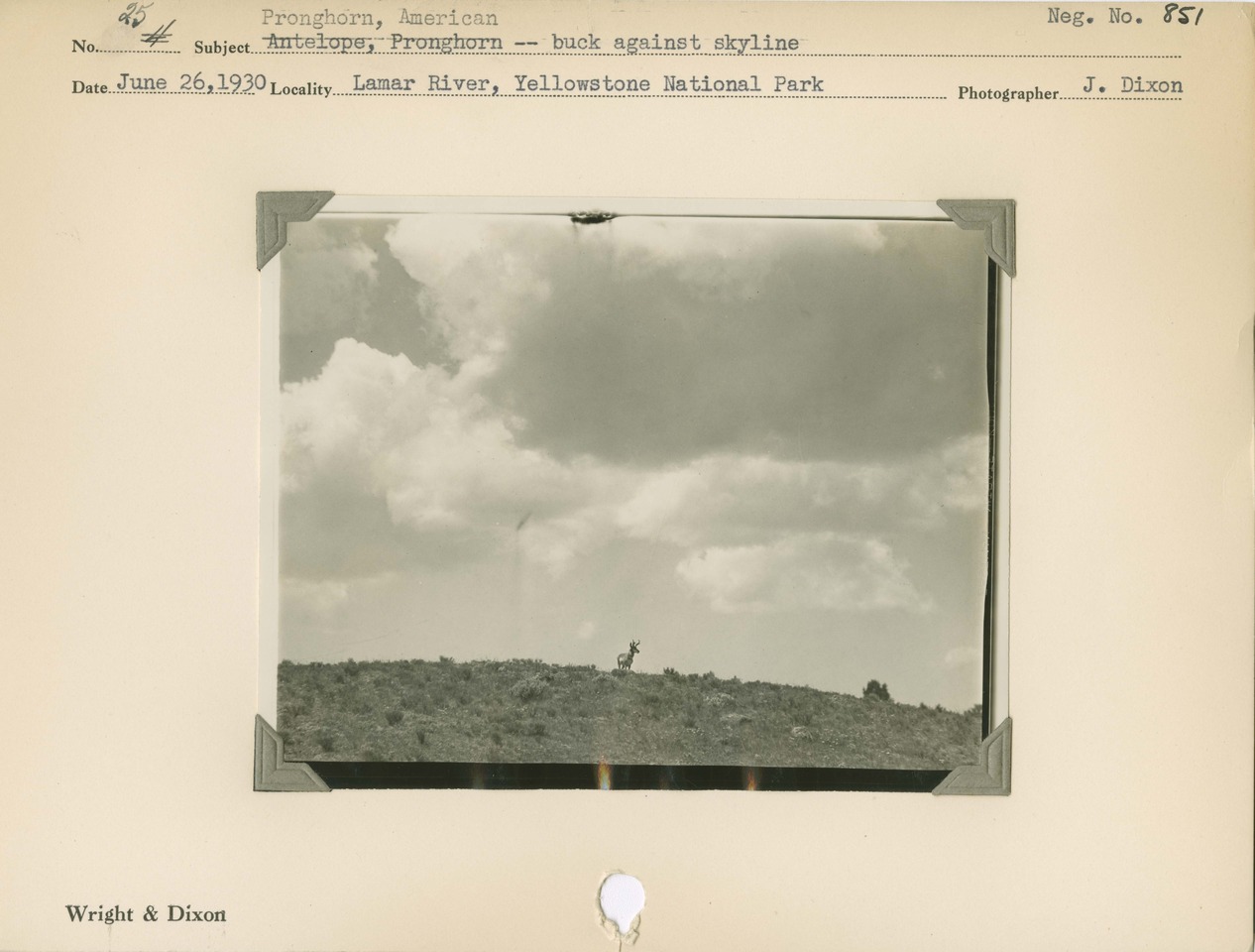 Pronghorn, American – buck against skyline. Locality: Lamar River, Yellowstone National Park. Negative #: 851