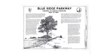 Drawing with tree, fence, and text discussing purpose, planning, and construction of the Blue Ridge Parkway