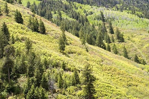 The lush green hillsides at Kokanee Bay, the turn around point of the boat tour.