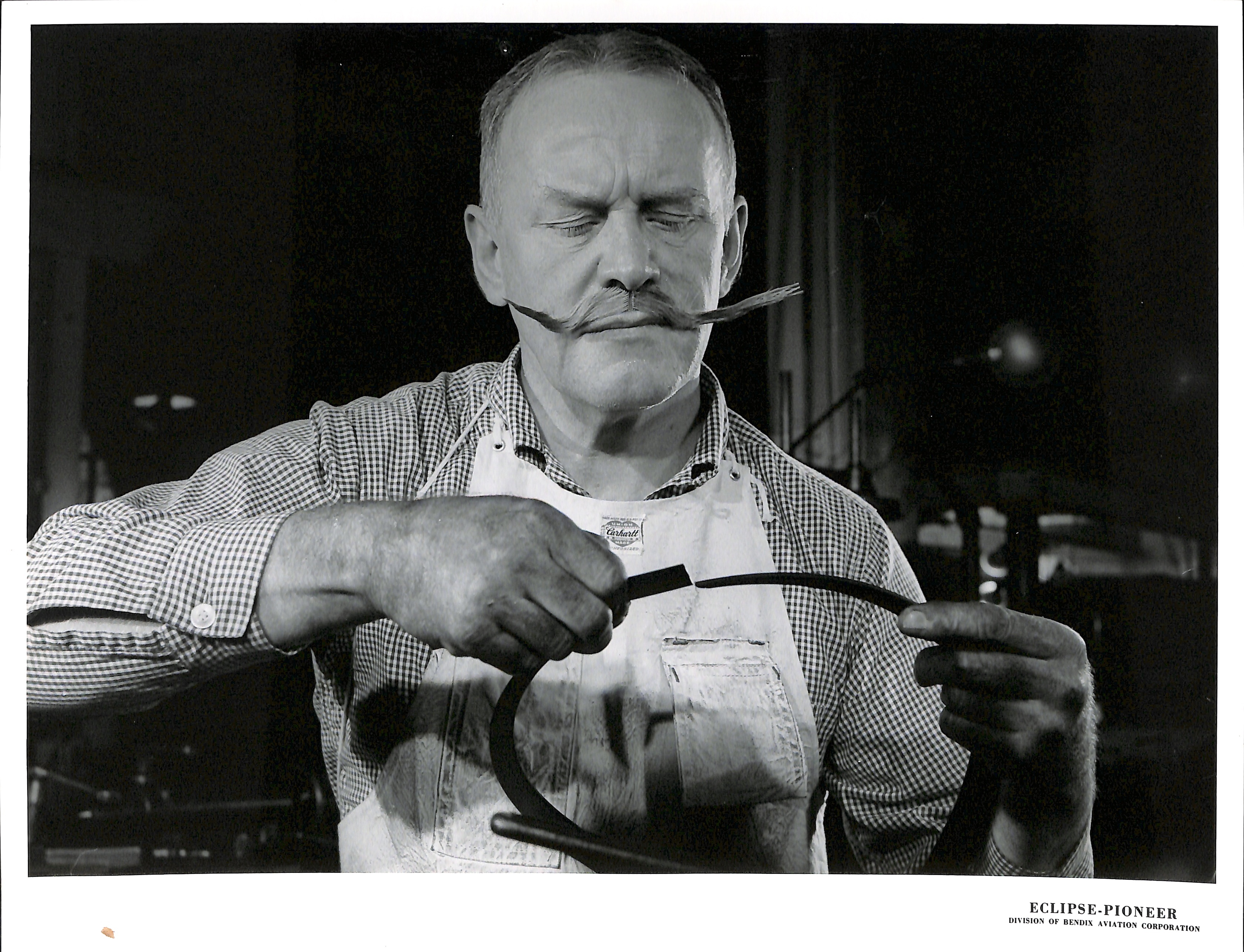 Movie still from movie, "The Soft Touch," filmed in the machine shop.