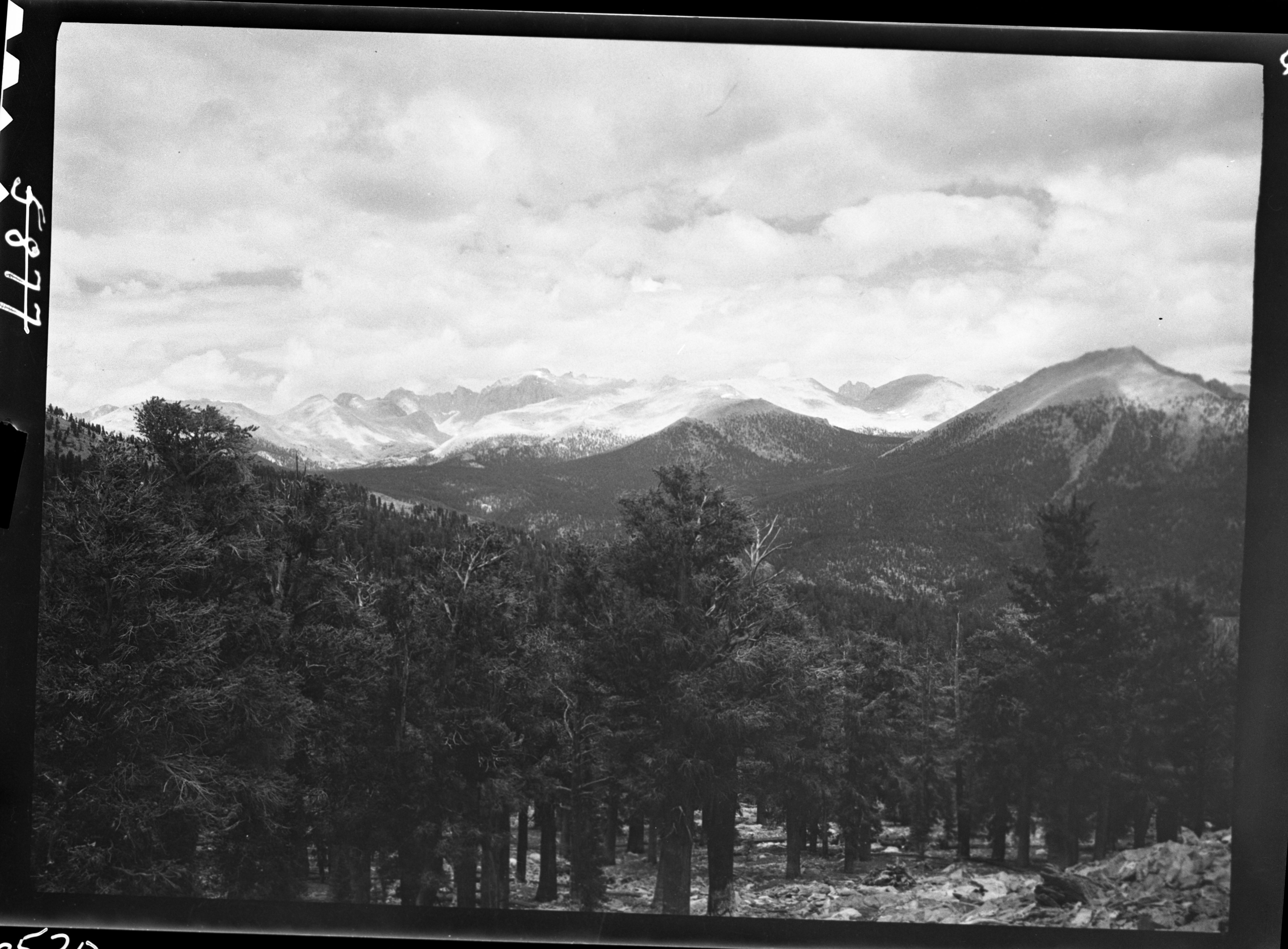 Lowell Sumner, 361009, Chagoopa Plateau, SNP, Kaweah Peaks, panorama of mountains at north end of Chagoopa Plateau. Near right panel of five panel panorama.