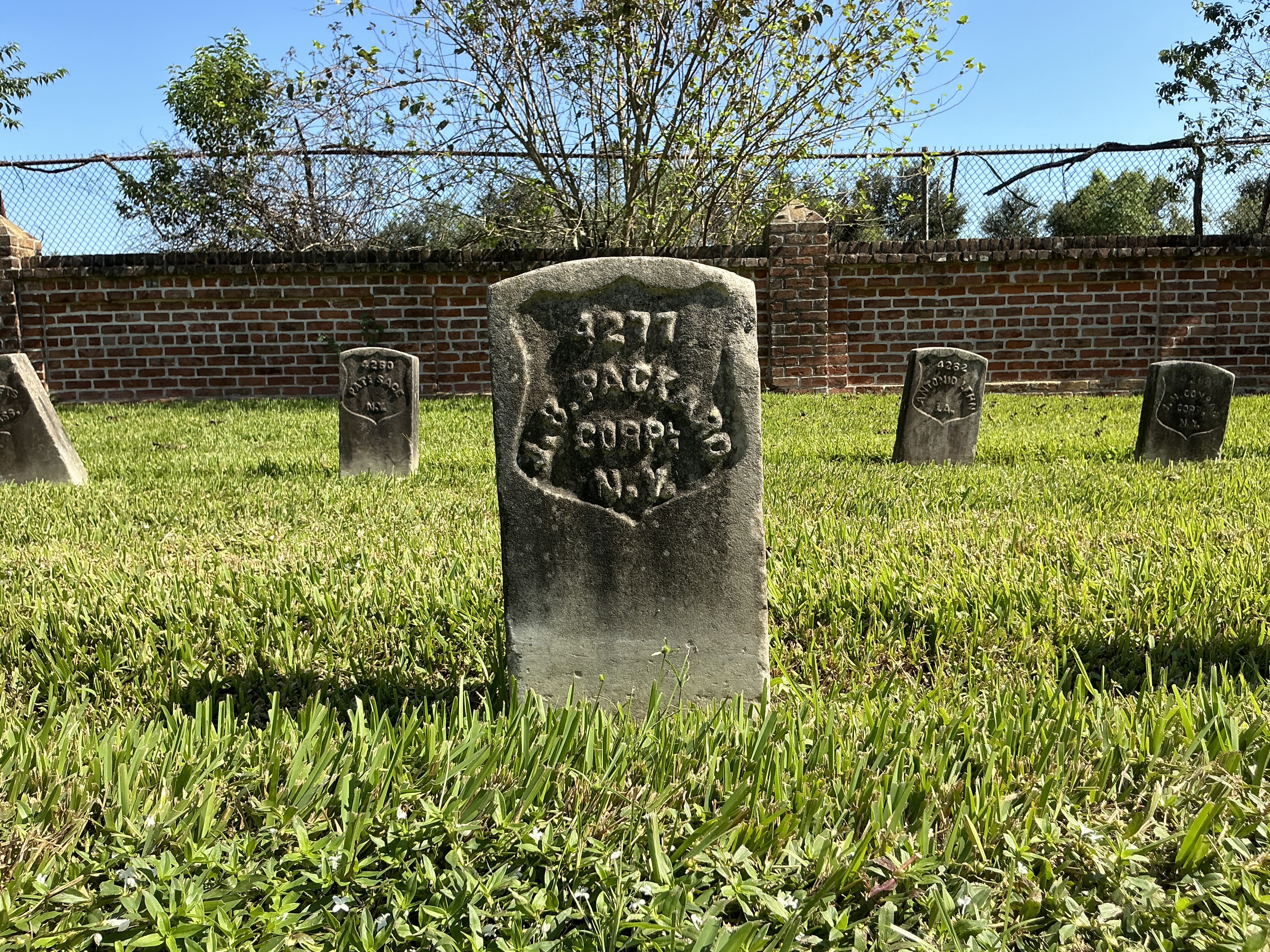 Headstone at Chalmette National Cemetery. Grave ID: 4277. Located at Section 54, Row 4, Site Number 13. Photo taken as part of the 2024 condition assessment and inventory.