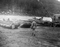 Soldiers practice assembling a bridge at Camp Prince.