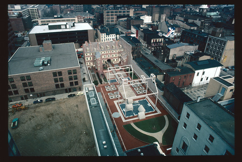 Franklin Court. Aerial view. Looking northeast.
