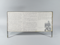 Letter written by Eleanor Wimbish to her son, William Reed Stocks (KIA 02/13/1969) on November 11, 1983. In it, she recalls her first visit to the Wall, on November 9, 1982, and records what her diary entry from that day said. Written on three pages that have been mounted side-by-side on cardboard wrapped with tissue paper, and then wrapped with plastic and placed in a metal frame with three legs.