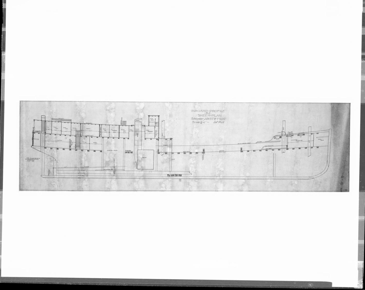 J.B. Stetson (built 1905; steam schooner), inboard profile and sheer plan, 1905 Oct 07