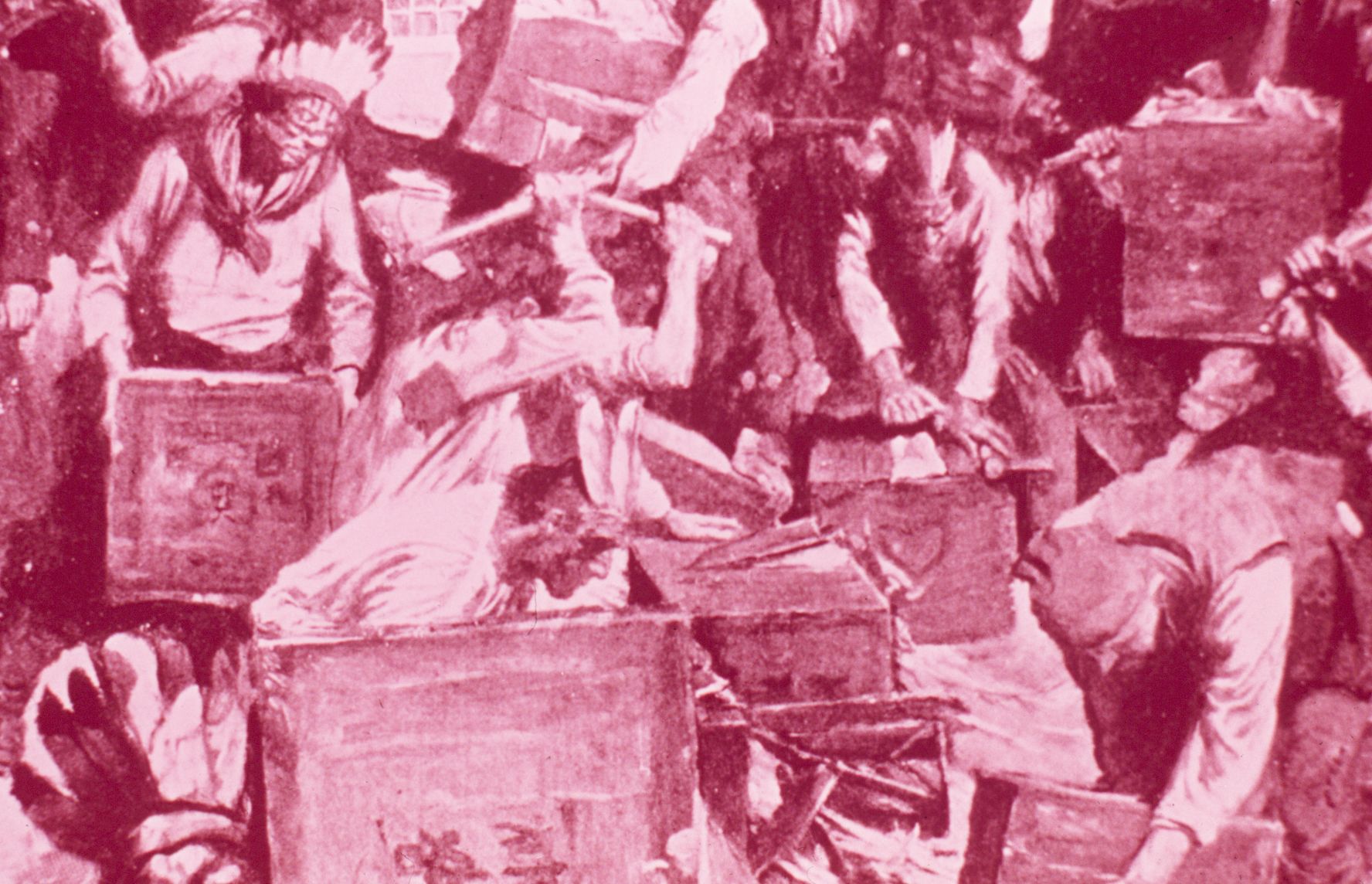 Breaking open crates. (drawing)