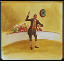 Man, possibly Patrick Henry, speaking in the House of Burgesses in Williamsburg, Virginia.
