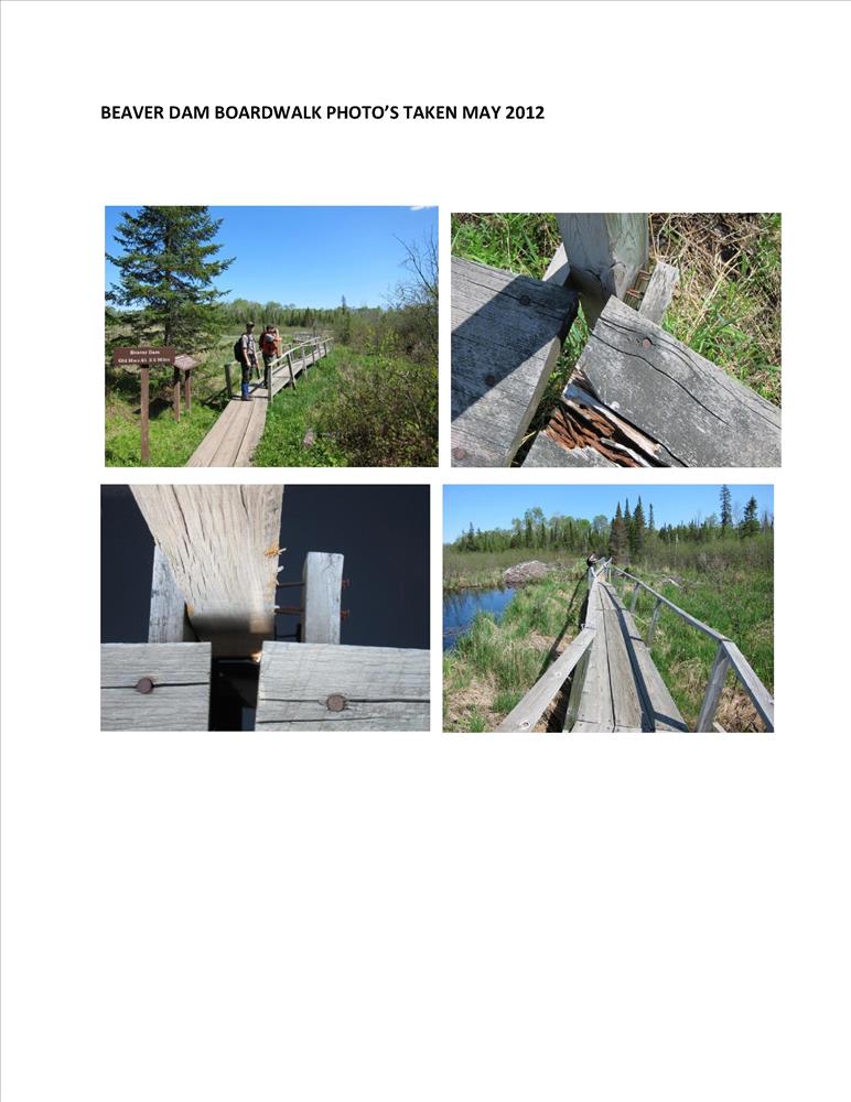 This report is a word document of photo's taken in May 2012 of the poor condition of the Beaver Dam boardwalk on the Historic Grand Portage Trail