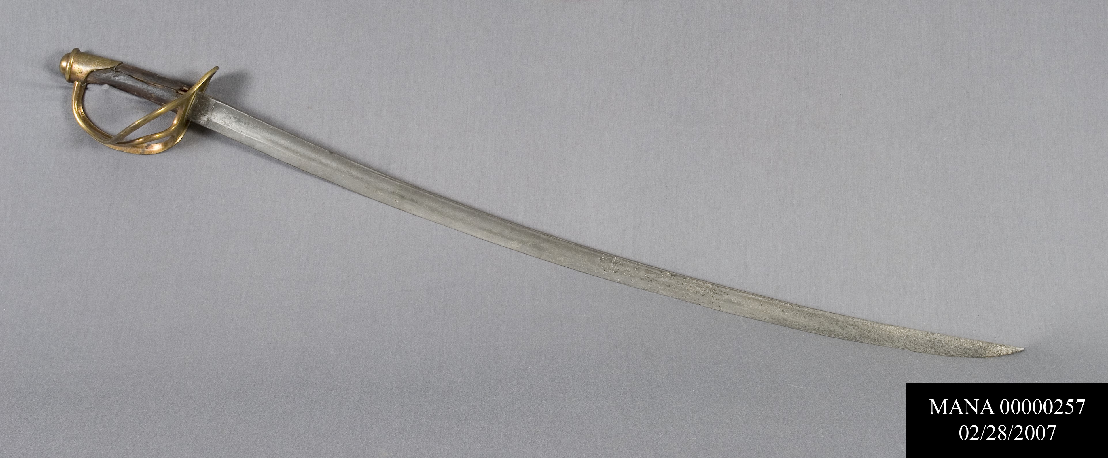 M1840 HEAVY CAVALRY (DRAGOON) SABER; EUROPEAN CONTRACT/IMPORT. LEATHER & WIRE WRAPPING GONE FROM GRIP; BLADE PITTED. NO SCABBARD.