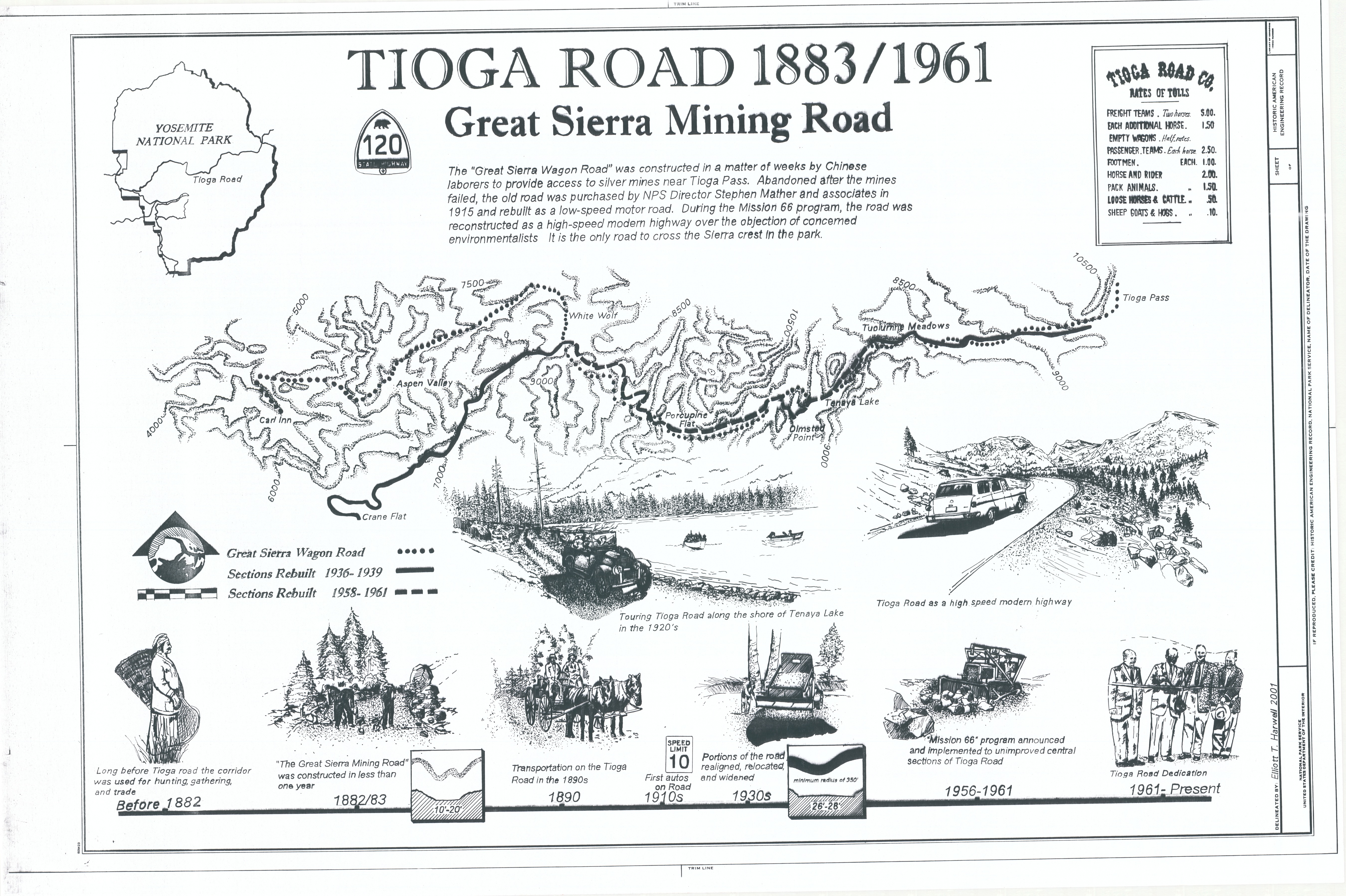 Sketches, map, location guide, and illustrated description of Mariposa Grove Road