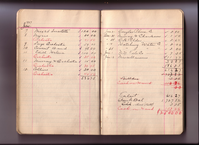 Some of the markings made in pencil in these cash books were made by ENHS Curator Leah Burt during the 1970s and/or early 1980s. For Leah Burt handwriting examples see pages for: December 19, 1921 (cash book 17) ; February 12, 1923 (cash book 17) ; October 27, 1924 (cash book 18) ; December 01, 1925 (cash book 19).