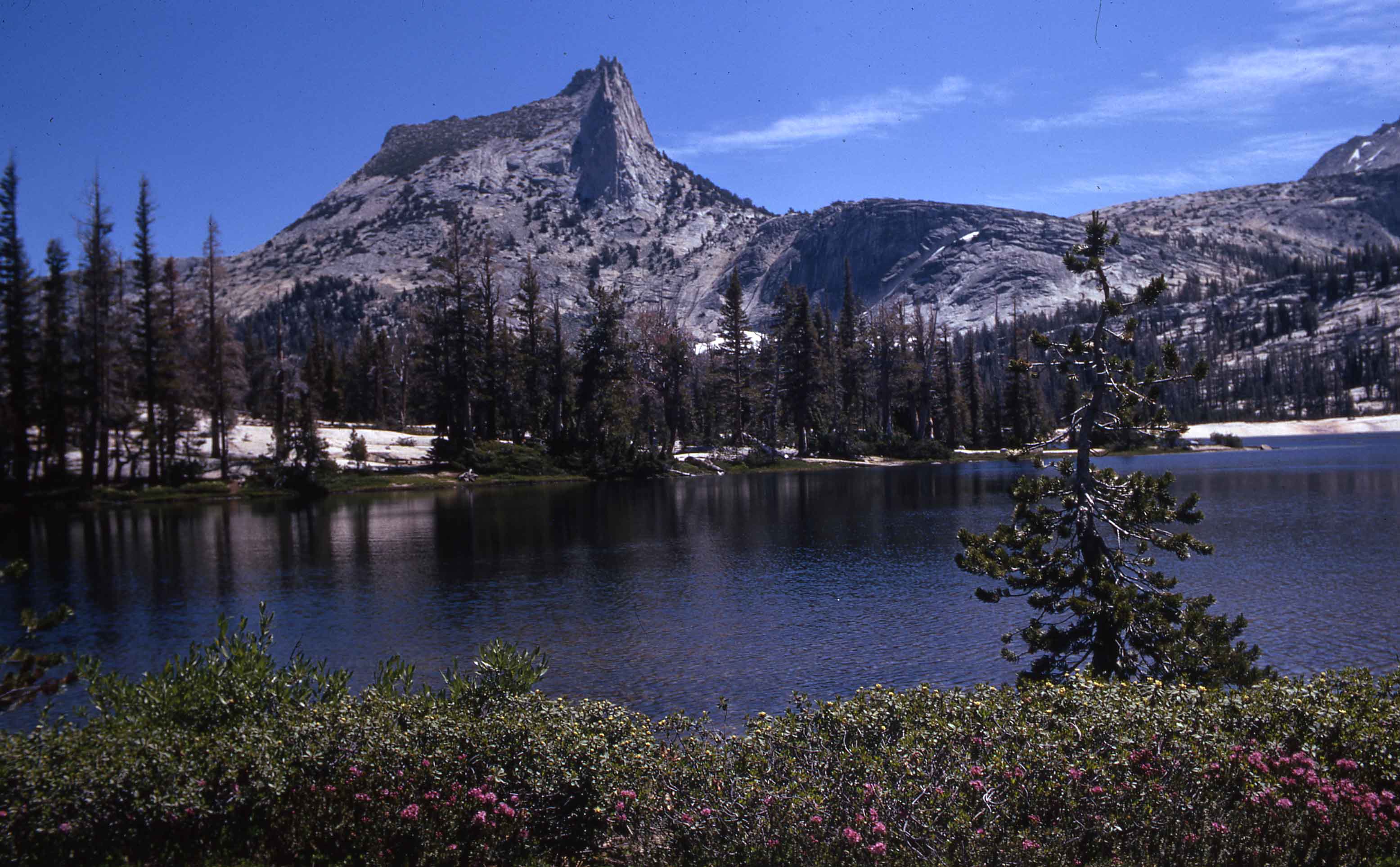 A-21-59, Cathedral Lake and [Cathedral] Peak, Bryan Harry, August 1967, Original, A.16.j.8, A168, Lakes, Yosemite National Park, California, 95389, A-22-017-010
