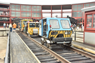 Four trackcar speeders on a turntable for a demonstration