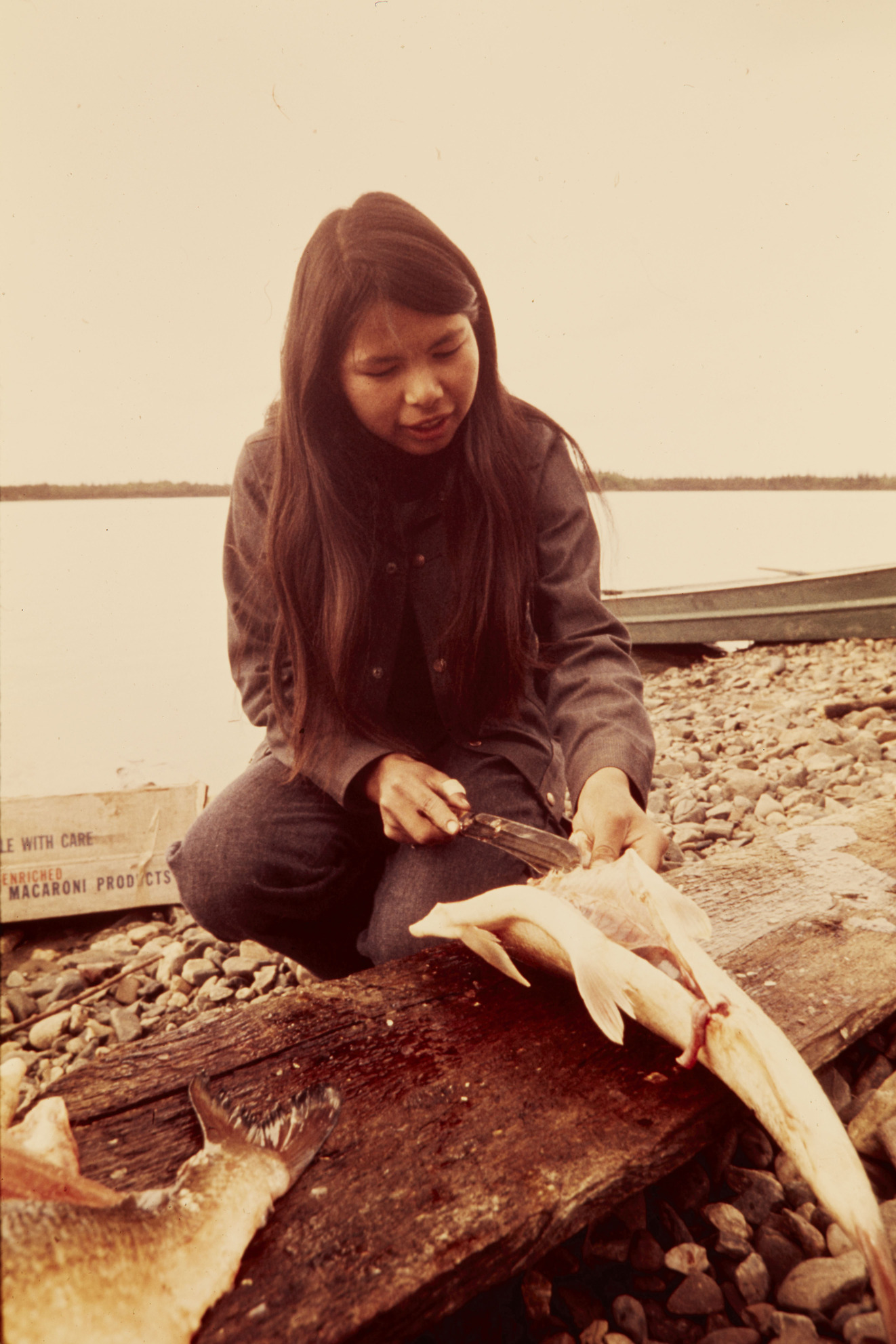 Alaska Natives. Athapaskan girl cleaning fish at Tanana Survival School, a Native youth camp on the Yukon River. Alaska Task Force # 2341-16-R4166