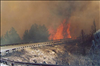 Heavy flames viewed at the edge of a road, Bircher Fire, Mesa Verde National Park, July 2000