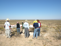 A group studies new waysides at the Yost Draw dedication ceremony at the Jornada del Muerto Trail in Sierra County, NM