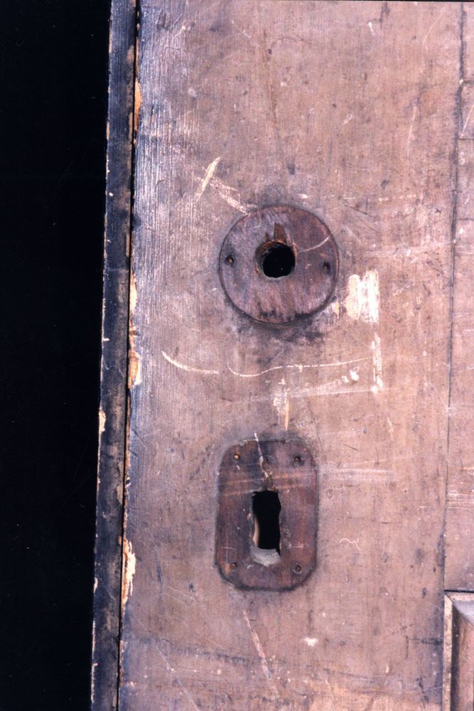 OCH-Interior-Lock on wooden door on 3rd floor north wing of the OCH. ; 1995