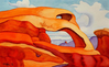 Painting of sandstone arch, cloudy sky