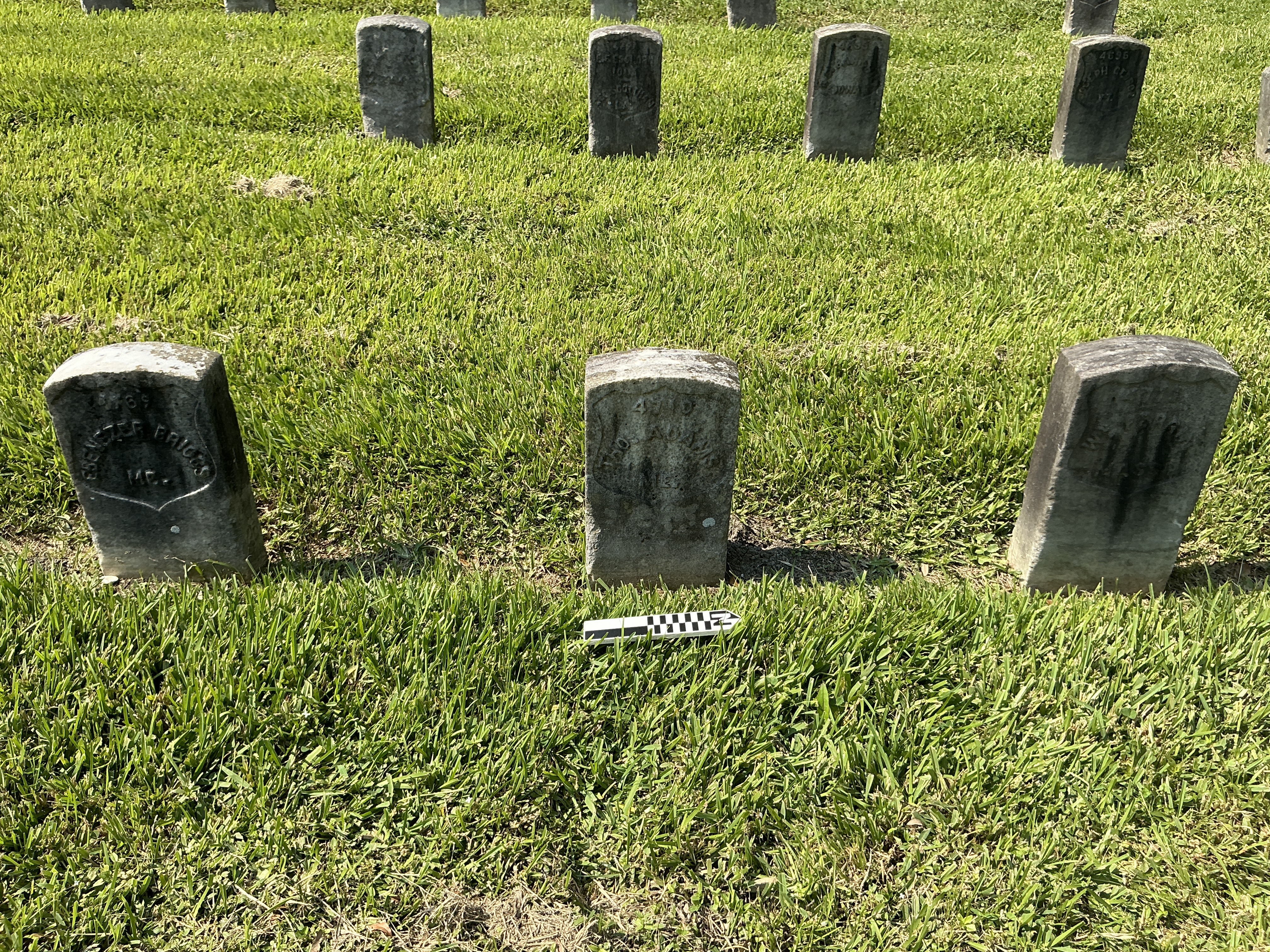 Headstone at Chalmette National Cemetery. Grave ID: 4710. Located at Section 59, Row 1, Site Number 13. Photo taken as part of the 2024 condition assessment and inventory.