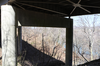 Columns supporting Windy Run Bridge with the Potomac River in the background.