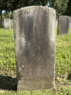 Back of historic upright marble headstone with recessed shield face.