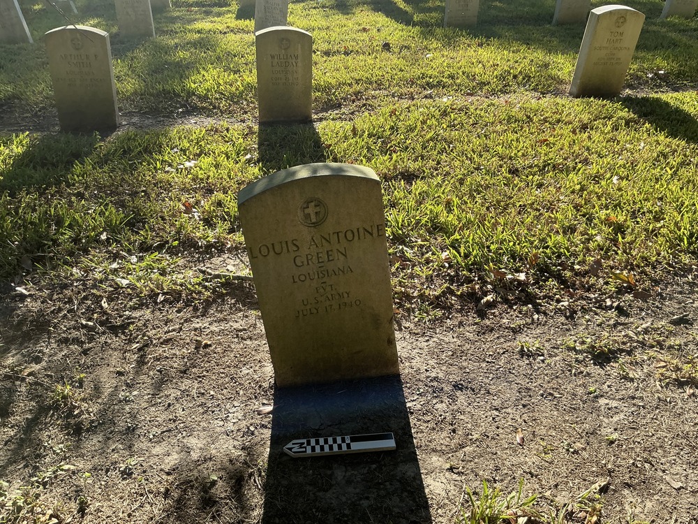Headstone at Chalmette National Cemetery. Grave ID: 14696. Located at Section 175, Row 1, Site Number 14. Photo taken as part of the 2024 condition assessment and inventory.