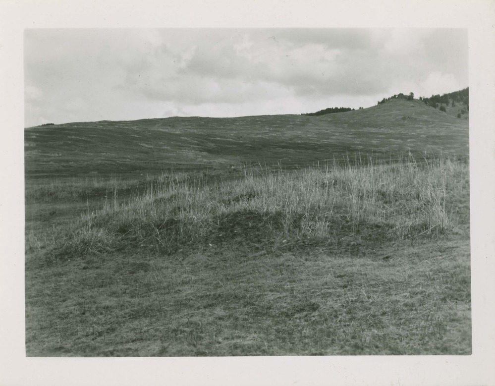 Rough mound covered with "rye grass" occupied by many ground squirrels which forage mostly in shorter and more palatable vegetation. Hellroaring Slope. Locality: Yellowstone National Park. Negative #: 11289