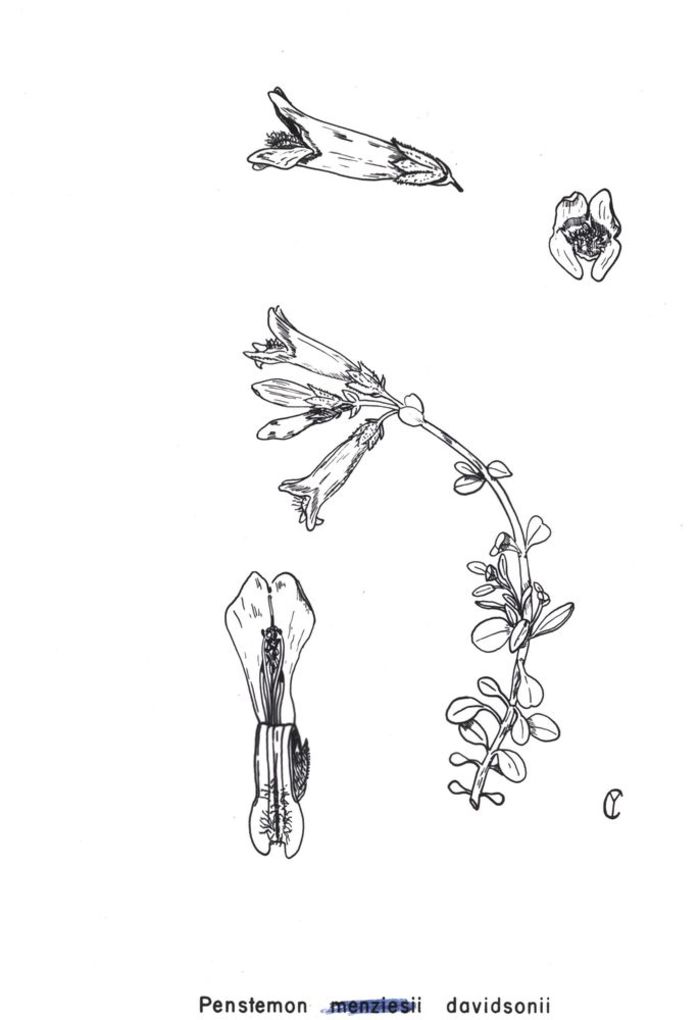 Subject: Penstemon davidsonii Davidson's penstamen Drawings are in 'Shrubs of Crater Lake National Park' by Charles Yocom published in 1964