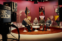 NPS Staff sitting on the set for the 1972 Centennial, NBC Today Show. Left to right George Hartzog, William Everhart, Frank McGee; Jack K. Anderson Image Number 72-138-43.