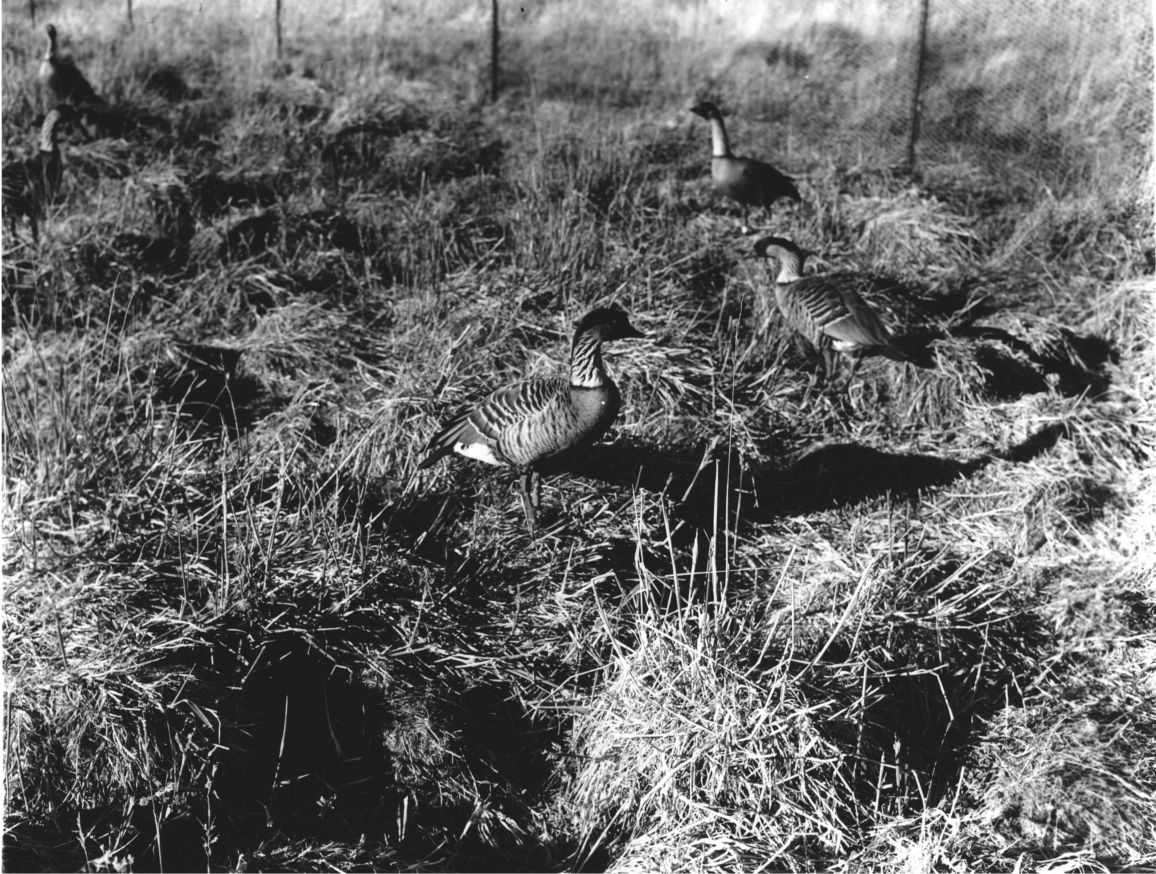 Subject: Nene release at Paliku, the first. Date: 1962. Location: Paliku nene pen. Accession # HALE-84; D-2; 62-43b.